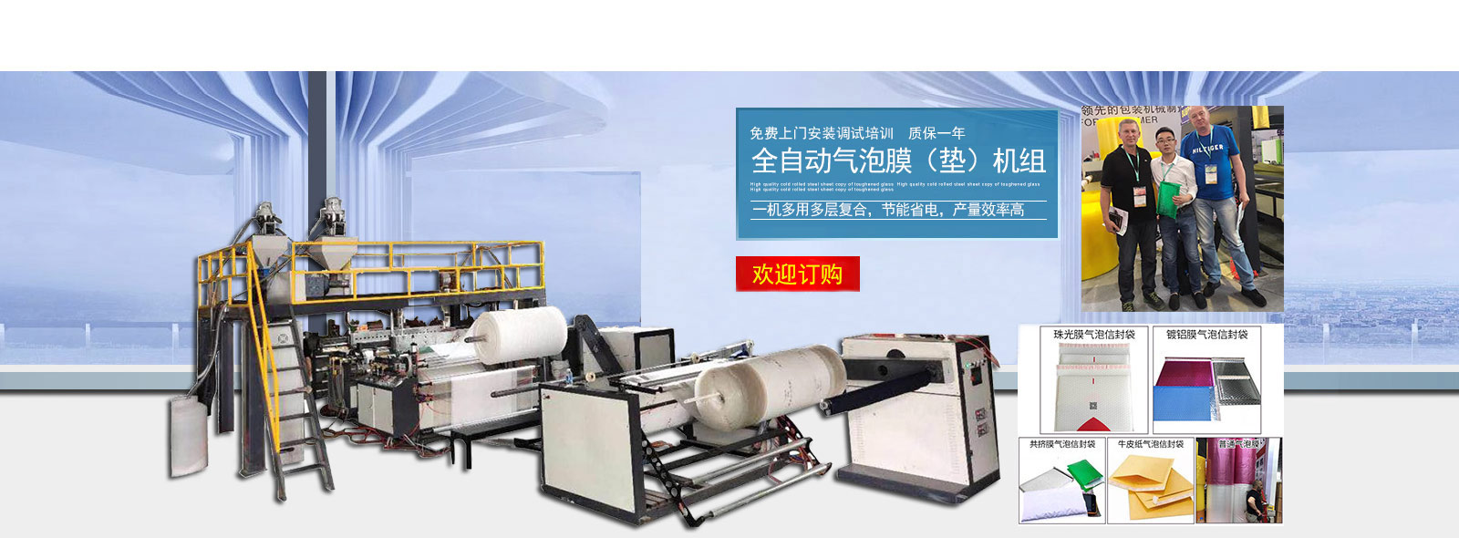 本公司主要銷售氣泡膜機,氣墊膜機,拉伸纏繞膜機,保鮮膜機,淋膜機,吹膜機,制袋機,印刷機,食品包裝機等全套塑料包裝機械設備.電話:13587519933陳.